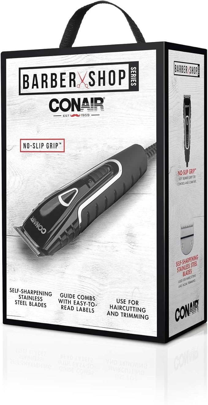 - Home Haircut Kit: The Conair Barbershop Series No Slip Grip 20 Piece Haircut Kit is a home barber’s dream; The corded hair clipper with taper control has Japanese stainless steel blades and a soft rubber grip for comfort and ease