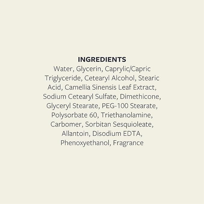 - Active Ingredients : allantoin,carbomer,cetearyl alcohol,disodium edta,glycerin,glyceryl stearate,green tea,polysorbate 60,triethanolamine allantoin,carbomer,cetearyl alcohol,disodium edta,glycerin,glyceryl stearate,green tea,polysorbate 60,triethanolamine