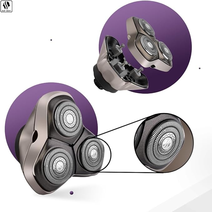 - Shave Faster: Experience unparalleled speed with the Skull Shaver PRO's next-generation 3 head blades. Designed for efficiency, these blades shave faster and navigate tighter areas with ease. Enjoy multi-directional rotary shaving heads that allow shaving in any direction, ensuring a closer shave in less time. With 20% more cutting action per rotation, achieve a flawless look every day with ease