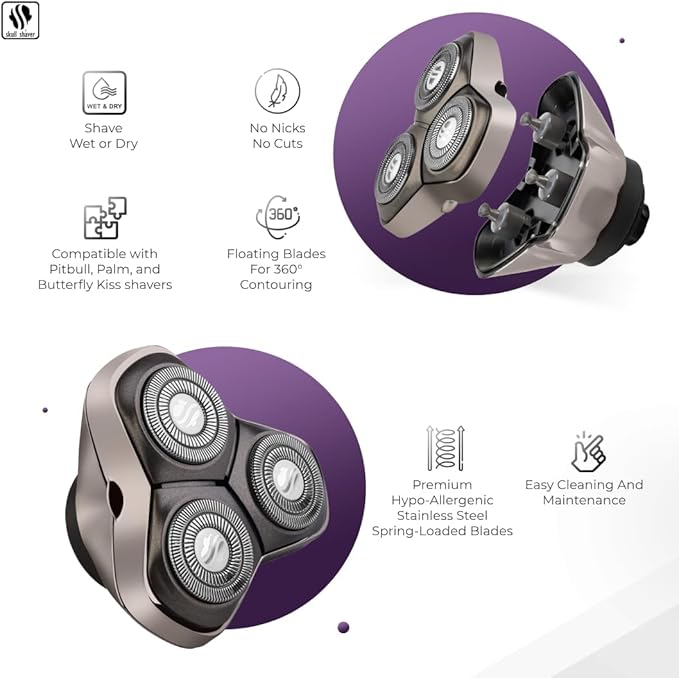 - Exceptional Contouring: Elevate your grooming experience with the exceptional contouring capabilities of the Skull Shaver Carver PRO 3 head blades. Each blade floats independently, providing 360 contouring to perfectly adjust to your head and face while shaving. Enjoy better coverage and faster shaving with no irritation, thanks to the flexible and adaptive design of these innovative blades