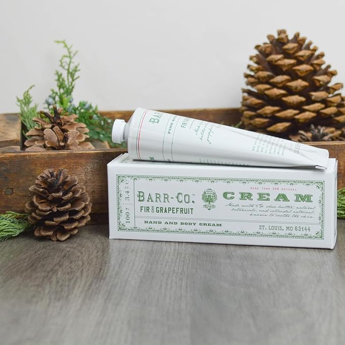 BARR-CO. Fir & Grapefruit Hand & Body Cream, Woody Citrus Scent, Body Cream for Dry Cracked Skin, Suitable for Aging Crepey Skin, Moisturizing Shea Butter Cream, 3.4 oz