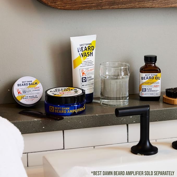 - MANS GROOMING GIFT SET - The men's beard gift set includes the Duke Cannon Best Damn Beard Oil, Beard Wash, and Beard Balm