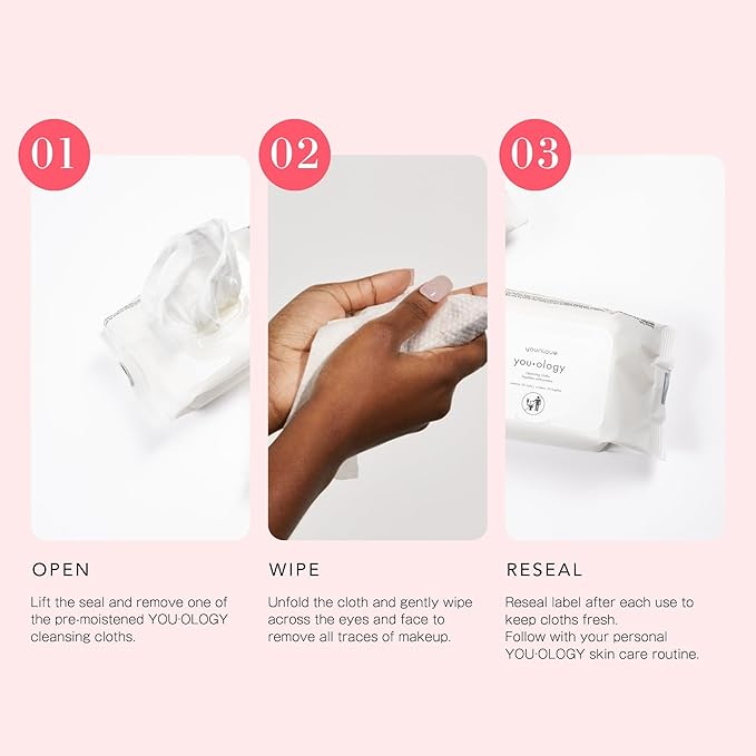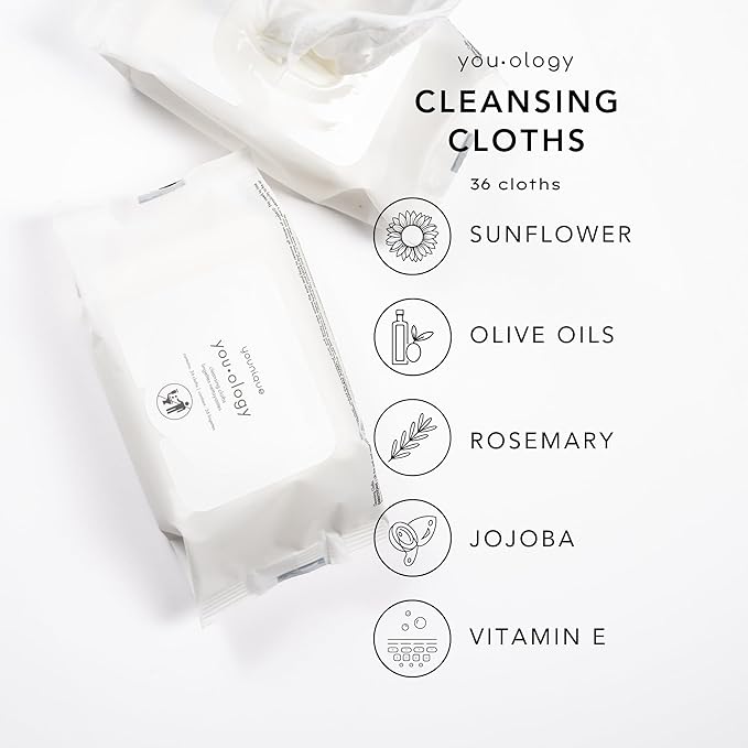 YOU·OLOGY Cleansing Cloths | 36 Count | Makeup Remover Wipes with Jojoba and Olive Oil | Gentle Facial Wipes for Clean, Hydrated Skin Care