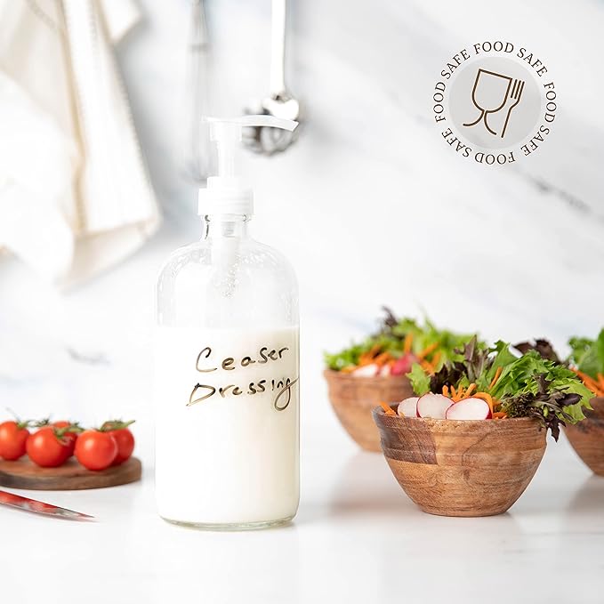 kitchentoolz 32-Ounce Large Clear Glass Boston Round Bottles w/Natural Color Pumps. Great for Lotions, Soaps,Oils, Sauces - Food Safe and Medical Grade (Pack of 2)
