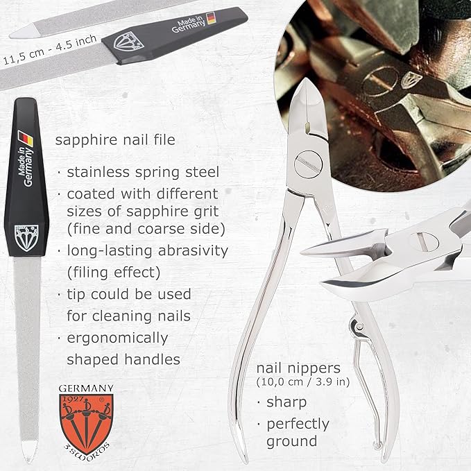 - NAIL CARE KIT from 3 Swords Germany with professional manicure and pedicure tools. Our sets for home and travel use convince trough highest levels of quality, modern design, durability and German engineering combined with a first class customer service.