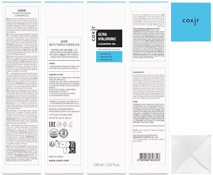 coxir ULTRA HYALURONIC CLEANSING OIL l Gentle Korean Facial Cleanser, Blackhead, Makeup Removal with Hyaluronic Acid, Plant-based oils, No Mineral Oil [5.07 Fl.oz(pack of 1)]
