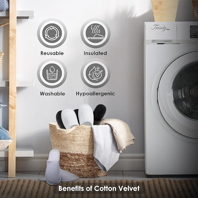 MODLUX Spa Slippers, 6-12 Pairs Cotton Velvet Closed Toe Disposable Slippers for Guests with Travel Bags, House, Indoor, Bathroom, Bedroom, Hotel, Bride Slippers
