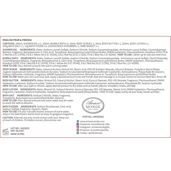 Bath & Shower Spa Gift Basket Set, with English Pear & Freesia Fragrance Bath Gift Basket for Women & Men Includes Body Lotion, Shower Gel, Bath Salts, Bubble Bath, Body Scrub and More, 9 Pcs