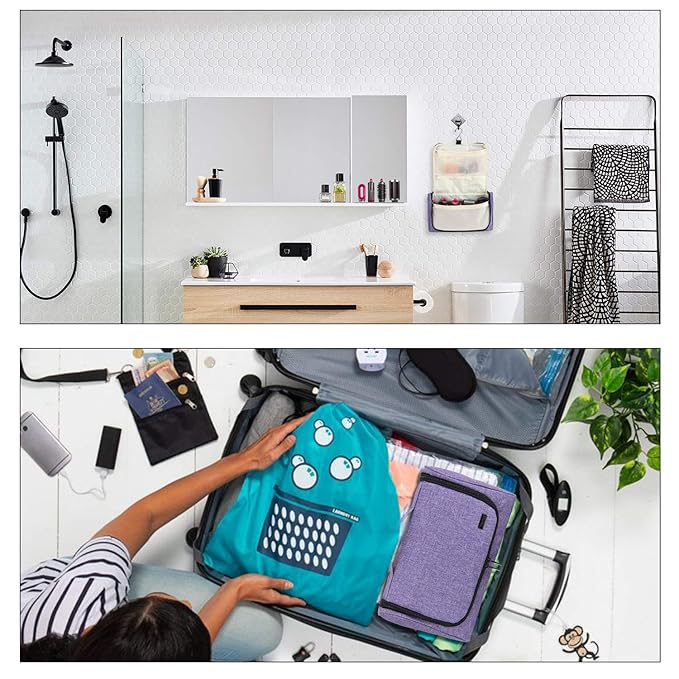 - CONVENIENT: Wide open design with two way zippers is easy to access. The sturdy stainless steel hanging hook can hang at bathroom, dressing cabinet or other places.