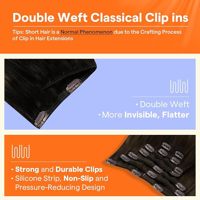 - Secure Clips for a No-Fuss Fit: Our lightweight clips with soft rubber backing are discreet yet secure, providing a comfortable, irritation-free hold. Designed to protect sensitive scalps, the extensions stay firmly in place throughout the day, even with fine or delicate hair.