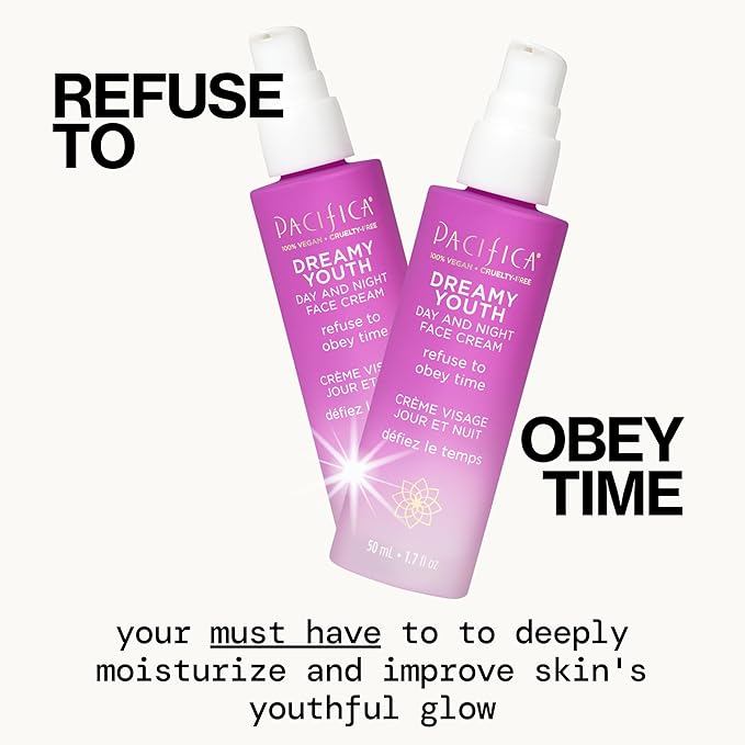 Pacifica Beauty Dreamy Youth Day and Night Face Cream - 1.7 Fl Oz (Pack of 2)- Moisturizer - For Dry and Aging Skin - Peptides, Grapeseed Oil, Floral Stem Cells - Sulfate + Paraben Free - Vegan and Cruelty Free