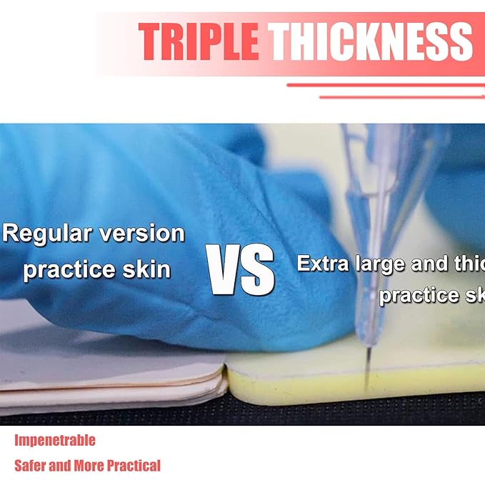 - LARGER & THICKER - Our 3MM practice skin for tattooing is 12*8” TWICE as big as the normal tattoo practice skins.Can be used on both sides, giving artists more creative space.