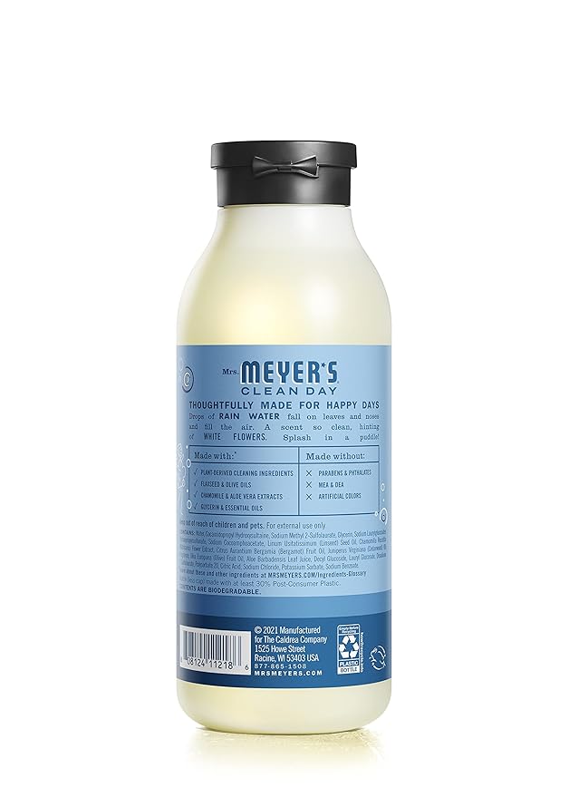 MRS. MEYER'S CLEAN DAY Moisturizing Body Wash for Women and Men, Biodegradable Shower Gel Formula Made with Essential Oils, Rain Water, 16 oz Bottle, Pack of 3
