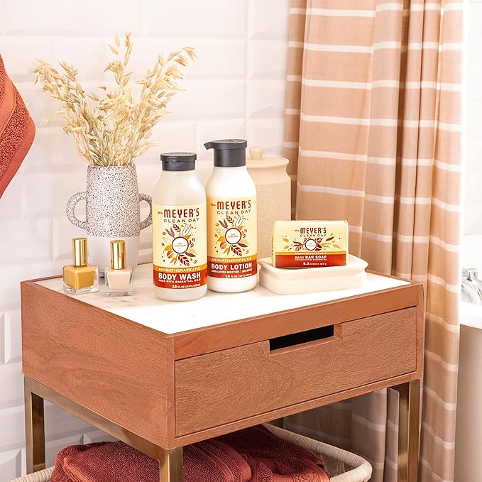 MRS. MEYER'S CLEAN DAY Moisturizing Body Wash for Women and Men, Biodegradable Shower Gel Formula Made with Essential Oils, Oat Blossom, 16 oz Bottle, Pack of 3
