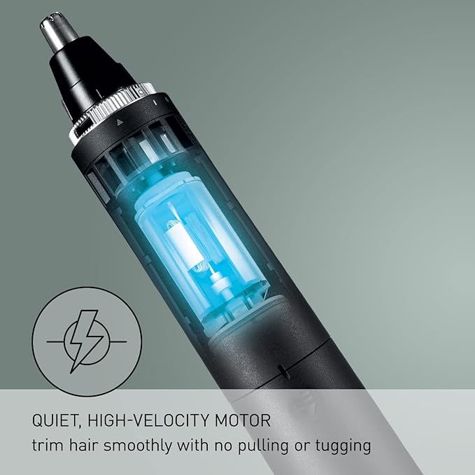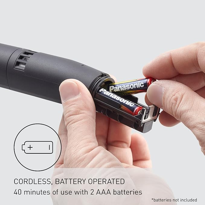 - Ergonomic Design: Angled profile makes it easier to each inside the nose and comfortable to hold; Cordless, battery-operated design provides up to 40 minutes of use (batteries not included)