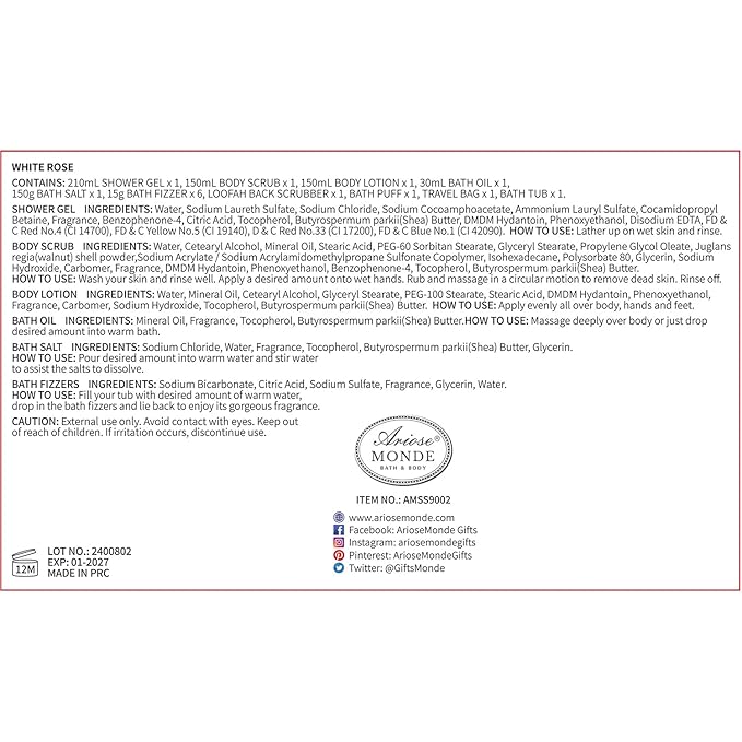 • Product Benefits : Provides a luxurious spa experience at home with various soothing and moisturizing body care products in a fresh rose scent, suitable for different skin types Provides a luxurious spa experience at home with various soothing and moisturizing body care products in a fresh rose scent, suitable for different skin types