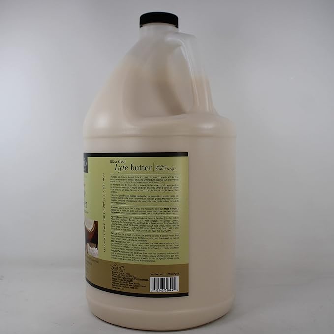 Cuccio Naturale Lyte Ultra-Sheer Body Butter - Replenishing Scented Moisturizer Cream - Deep Hydration To Repair Dry Skin - All Natural, Cruelty-Free Formula - Coconut And White Ginger - 1 Gallon