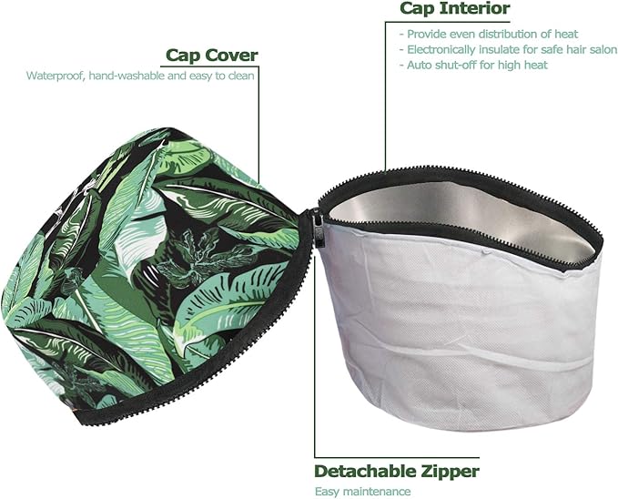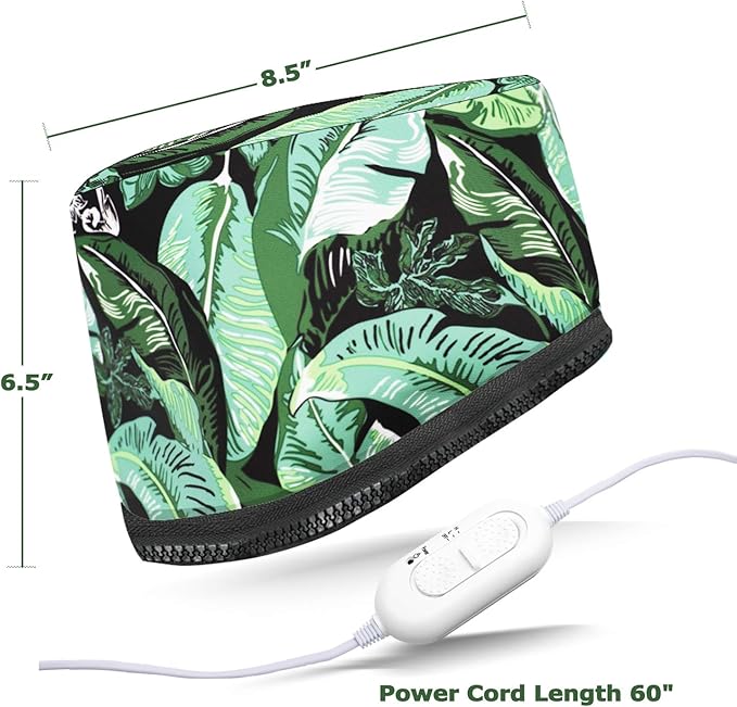 VICARKO Hair Steamer Thermal Heat Cap Deep Conditioning Natural Black Hair Scalp Treatment Spa Hot Head Care Electric for Home Use Leaf Print