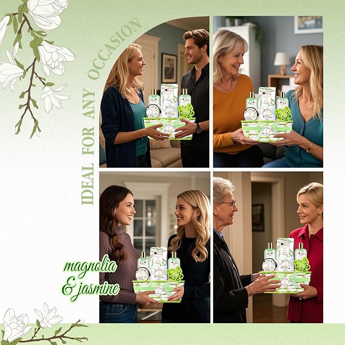 Spa Gifts for Women, Bath Sets, 7Pcs Spa Gift Set w/Shower Gel, Bubble Bath, Bath Salts, Bath Bomb, Body Lotion, Christmas Gifts for Women, Magnolia & Jasmine Bath Set