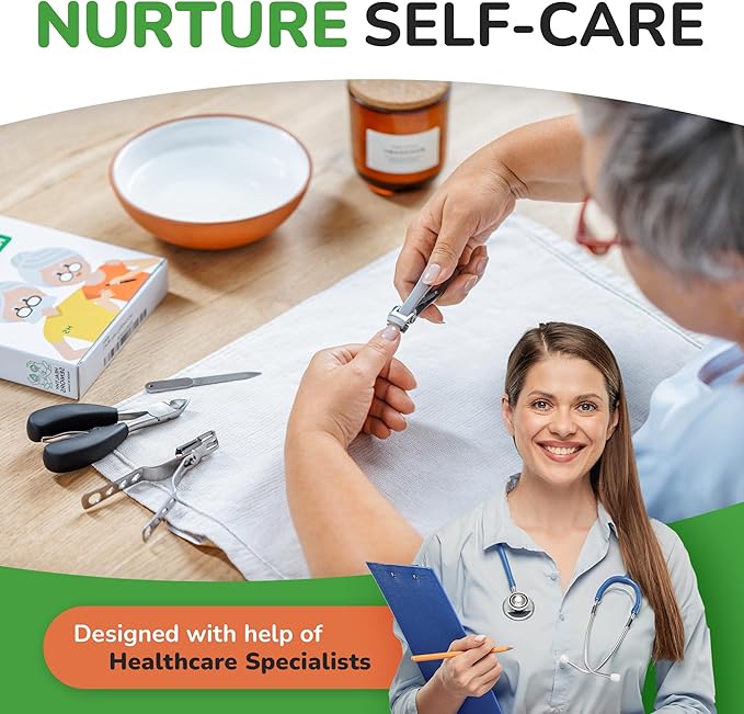 - Smooth Toenail Clippers for Thick Toenails - Extra-wide jaw opening specifically engineered for the elderly. These professional nail clippers for seniors feature surgical-grade blades that easily cut tough nails from aging, paronychia, or diabetes