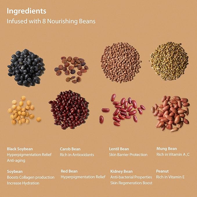 - Hydrating & Soothing Clear Essence, Toner and Face Moisturizer - 8 beans extracts are rich in Vitamin E, Collagen, Antioxidants and Amino Acids. They not only hydrate skin intensely and sooth and fight free radical damage, but also boost collagen production and ward of skin infections with their clarifying properties. This 8 Beans Clear Essence Toner Lotion and Moisturizer has Niacinamide and Adenosine that quenches thirsty dry skin and act as dark spot corrector.
