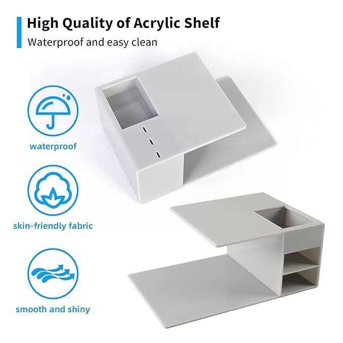 Eyelash Extension Neck Pillow With Acrylic Shelf Organizer Stand, Velvet Warm Lash Extension Grafting Pillow Makeup Tool Display Cabinet Shelves - Grey Shelf + Grey Pillow(Velvet Pillowcase Updated)