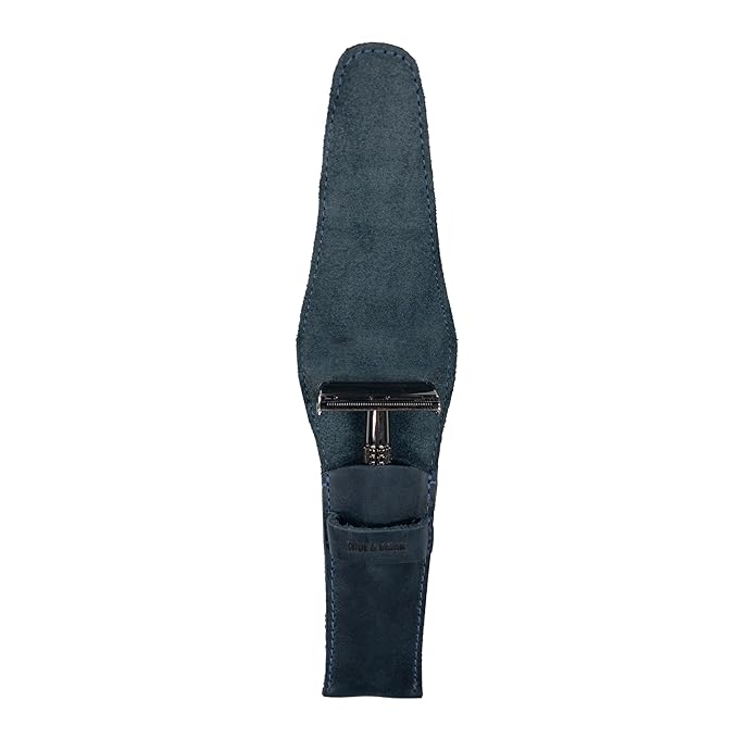 Hide & Drink, Leather Safety Razor Case, Shaving Accessories, Personal Care Essentials, Handmade Includes 101 Year Warranty (Slate Blue)