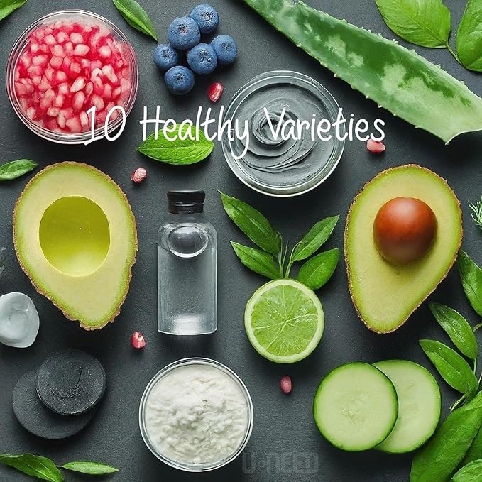 - Various types: Aloe, Avocado, Blueberry, Charcoal, Collagen, Cucumber, Green Tea, Pomegranate, Tea Tree, and Vitamin