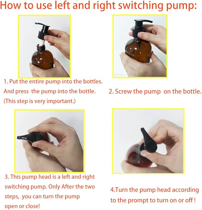 - Package:12 pack 8 oz Amber Glass Bottles with Pumps, 12 caps, 12 chalk label, 4 funnel, 1 pen