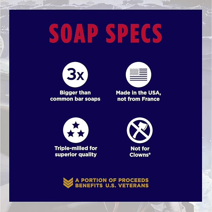 - HONORS THE VETS - To honor the military heritage of our Big Bricks of Soap, this particular item comes in our limited edition WWII-era propaganda package, reminding you that "Accomplishment is Our Secret Weapon!"