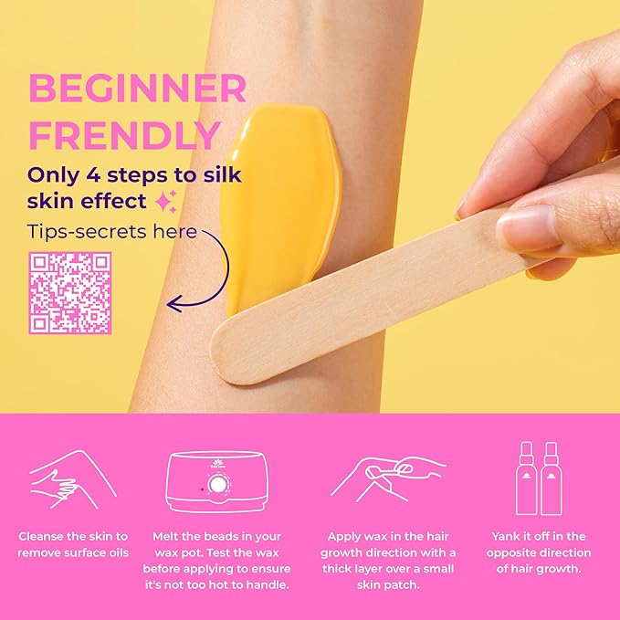 - Versatile - Wax beads can be applied to all types of skin and are equally suitable for legs, underarms, bikini and Brazilian, facial area, eyebrow, nose, upper lip depilation for both - women and men!