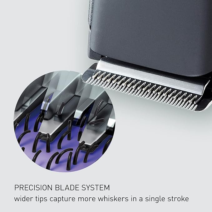 - Power Through Thick Beards: Advanced blade design captures more whiskers in one pass; high-performance motor powers through dense hair, eliminating snags and pulls for clean, comfortable cutting