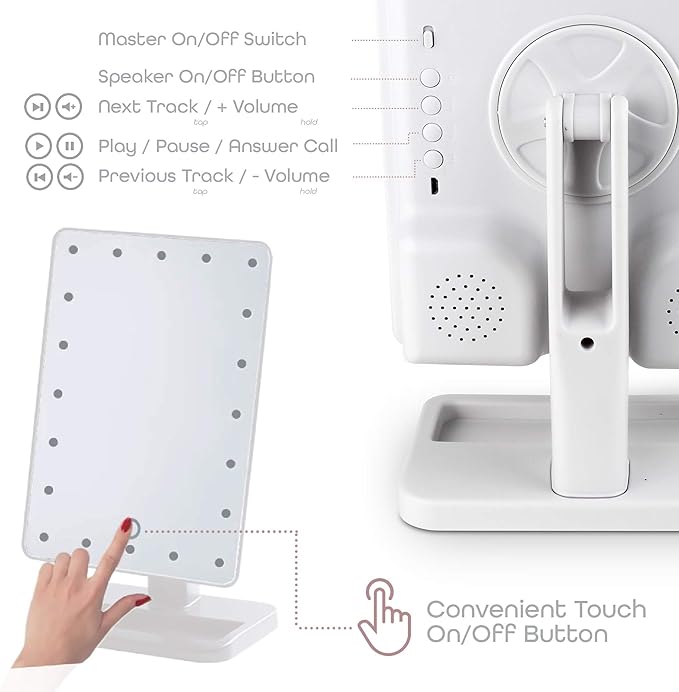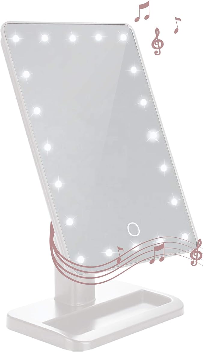 - This wireless mirror vanity makeup mirror has 20 LED lights all around controlled by the touchscreen button, so you always have the perfect amount of lighting even if you're in a dark room