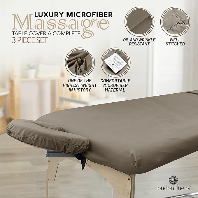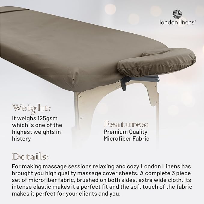 LONDON LINENS Soft Microfiber 3-Piece Massage Table Sheets - Super Lightweight, Stain and Wrinkle Resistant - Includes Table Cover, Fitted Sheet, and Face Rest Cover (walnut)