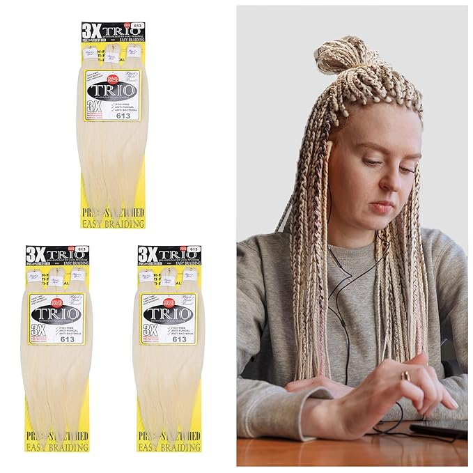 BNG 3X Pre-Stretched Braiding Hair, 28" Professional Itch Free Synthetic Fiber Braids Hair Extensions for Easy Braid, 3 PACKS (9 bundles), (#613 Platinum Blonde)