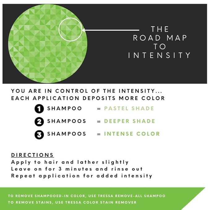 Watercolors by Tressa INTENSE 3-in-1 Color Depositing Shampoo, Semi Permanent Hair Color, Hair Dye Shampoo for Curly, Dry, and Normal Hair, 8 fl oz - GREEN