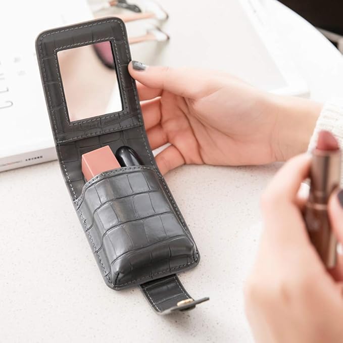 - This travel makeup case organizer is can hold three lipsticks (Note: Only Short Lipsticks). Equipped with a small mirror, easy to go out fix makeup.