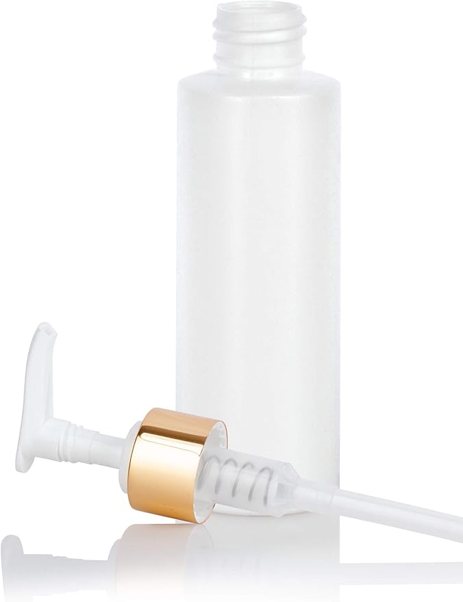 4 oz / 120 ml White Plastic HDPE Refillable Cylinder Squeeze Bottle with Gold Lotion Pump (12 Pack)