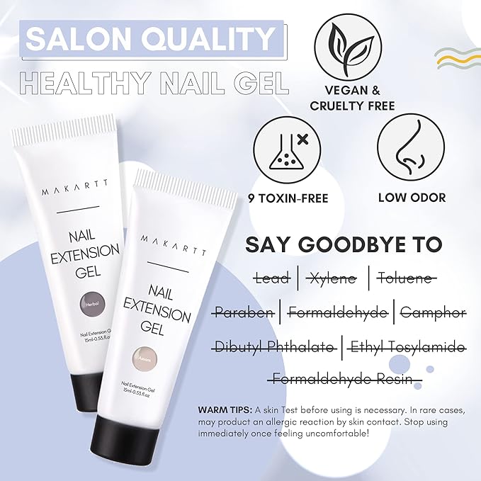 - Long-Lasting Effect & Quick Easy Use: Makartt takes pride in our long lasting and durable Nail Extension Gel technology, our commitment to research and development has yielded high quality products and leads the nail art industry. Makartt poly nail extension gel will last up about one month or longer with proper nail prep (filing, buffering, and cleaning )