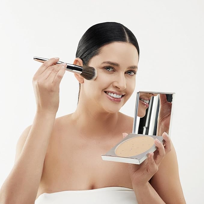 - SELF-ADJUSTING, SMOOTH APPLICATION: Ultra-fine micronized mineral powder adjusts to your skin tone for a smooth, even look; use the included chrome-handled Powder and Finishing Brush for easy application that won’t cake, crease, or get caught in fine lines and wrinkles.