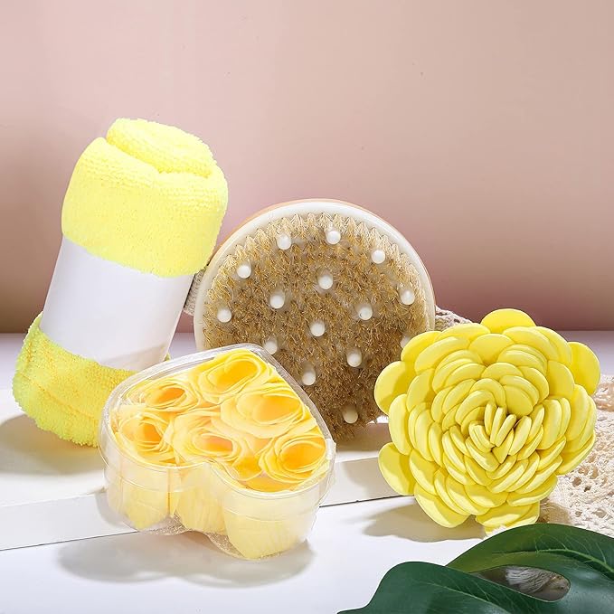 - ๐ Come with essential oil, bubble bath, shower gel, hand cream, body lotion, body butter, bath bombs, bath salt, shampoo bar, pouf sponge, shower cap, bath brush and handmade tote bag.