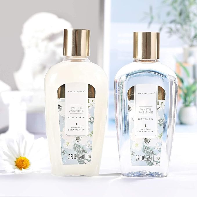 • 12Pcs Home Spa Set Includes: Shower Gel, Bubble Bath, Soap, Hand Cream, Bath Salt, Body Lotion, Essential Oil, Body Butter, Body Scrub, 6*Soap Petals, Pouf Sponge, Cloth Box
