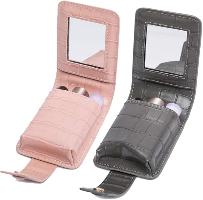 • This travel makeup case organizer is can hold three lipsticks (Note: Only Short Lipsticks). Equipped with a small mirror, easy to go out fix makeup.