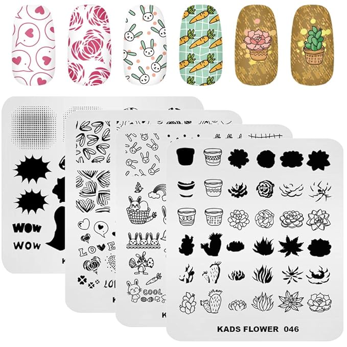 KADS 20pcs Nail Stamp Plates Set - Leaves, Flowers, Animal Nail Art Templates (20 Pcs)
