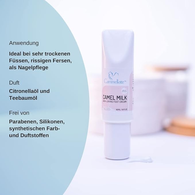 Camel Milk Foot Cream for Dry Cracked Feet With Shea Butter, Tea Tree Oil, Vitamins and Omega Fatty Acids 50 ml