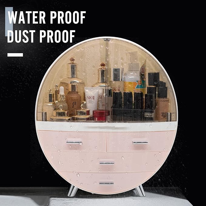 13.4''x15.7'' Makeup Organizer Large Capacity Waterproof and Dustproof Cosmetic Display Cases Desktop Beauty Storage Drawer Lipstick Skin Care Shelf (L, Pink)