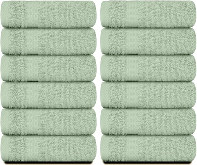 White Classic Luxury Washcloths for Bathroom-Hotel-Spa-Kitchen-Set - Circlet Egyptian Cotton - Highly Absorbent Hotel Quality Face Towels - Bulk Set of 12-13x13 Inch (Lt Green)