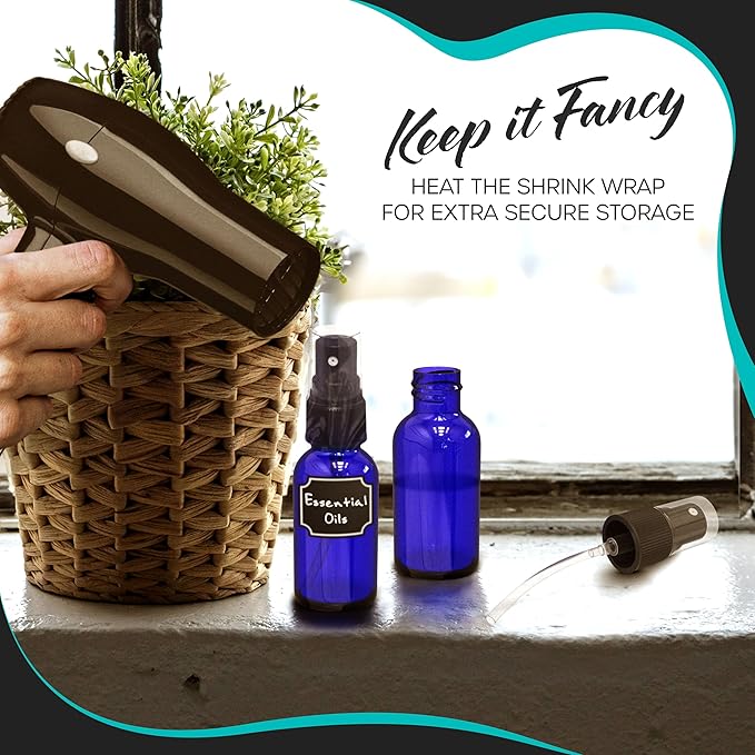 - Complete Mini Spray Bottle Kit: This fine mist spray bottle 48 pack has everything you need to spritz! Keep your small mister spray bottle set organized with 48-1.5"x1.25" labels & a white marker for clear identification. The 5" brush thoroughly cleans the 1 oz spray bottle & refilling the fine mist spray bottles is simple with the rigid funnel. Plus, 55-3.15"x2" shrink wrap pieces make this set great for gifting as a hair spray bottles , essential oil bottles or perfume bottles !