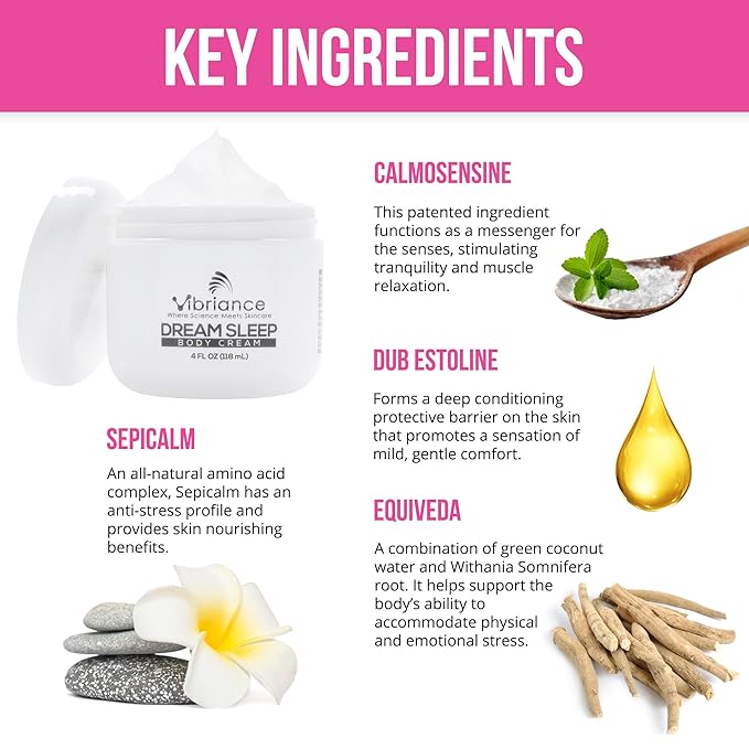 Vibriance Dream Sleep Body Cream, 4 fl oz - Fluffy Full Moisturizer for Dry Skin, Relaxation and Rejuvenation with Therapeutic Ingredients, Soothing Vanilla Aromatics