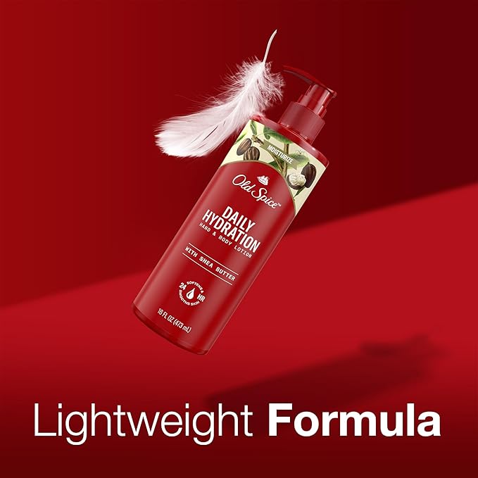 - Old Spice Daily Hydration Hand & Body Lotion with Shea Butter provides all-day skin hydration